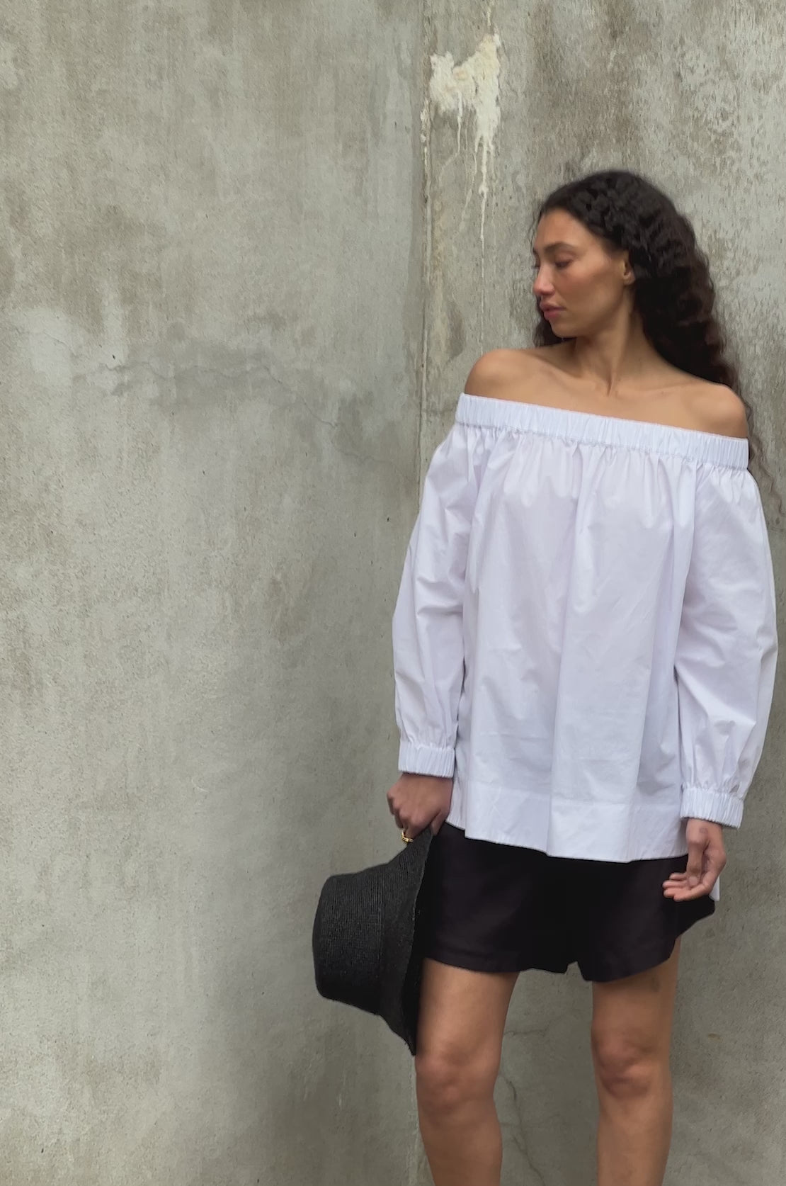 with off-the-shoulder statement tops firmly cemented in our spring must-haves, the tense top in cotton is a fresh take on this sweeping trend. featuring an elasticated shoulder neckline for comfort and wearability, and flattering side splits with deep hem facings. style with the tip pant and white kiss kicks for an easy weekend attire